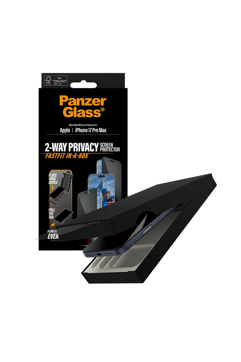 Apple iPhone 17 Pro Max Ultra-Wide Fit w. FastFit In-a-Box system Privacy Screen Protector Panzer Glass